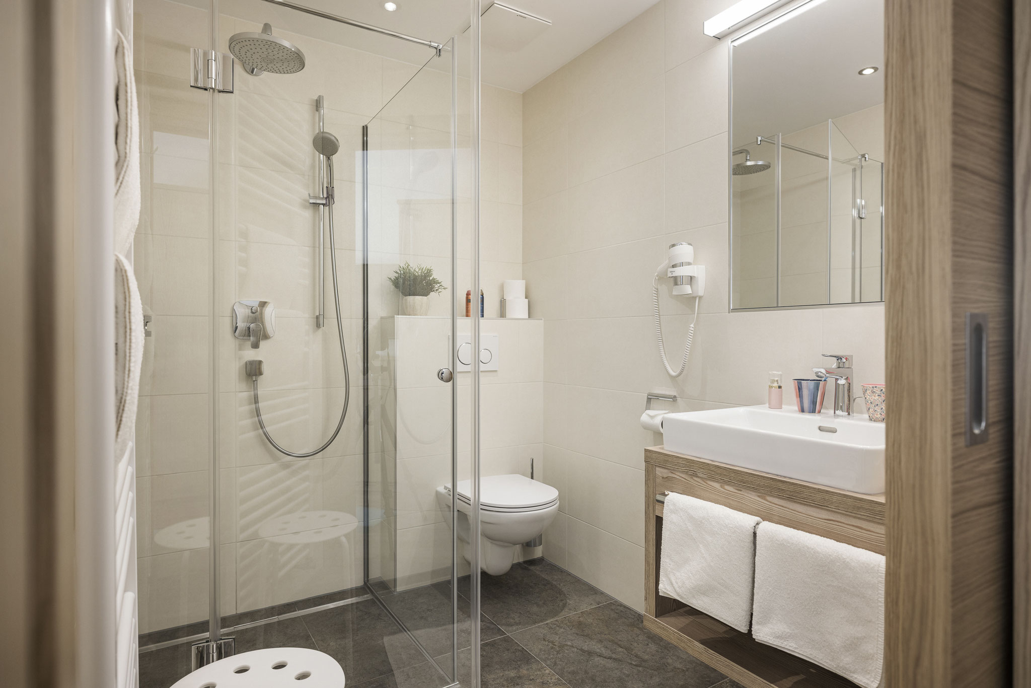 jeweils mit Dusche/WC und Balkon